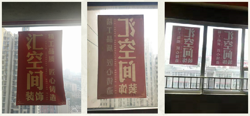 公司窗貼要正確規(guī)范,三室6張(別墅根據(jù)實際情況定制),需張貼于南和北窗戶的正中,字體向外橫平豎直(據(jù)小區(qū)物業(yè)管理執(zhí)行)